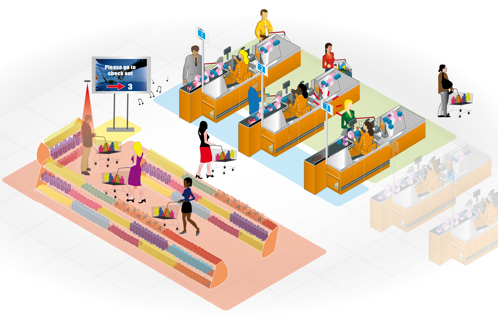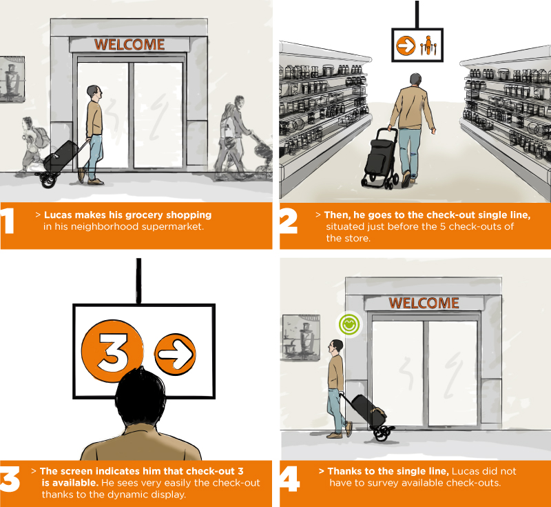 A nossa solução de fila única permite acelerar o processo de check-out para melhorar o atendimento ao cliente.