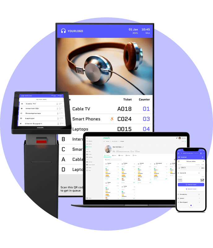 O Software gere de forma integrada as senhas físicas, retiradas no local de atendimento, e as móveis, geradas em qualquer dispositivo móvel, a fim de garantir uma experiência fluída e consistente.